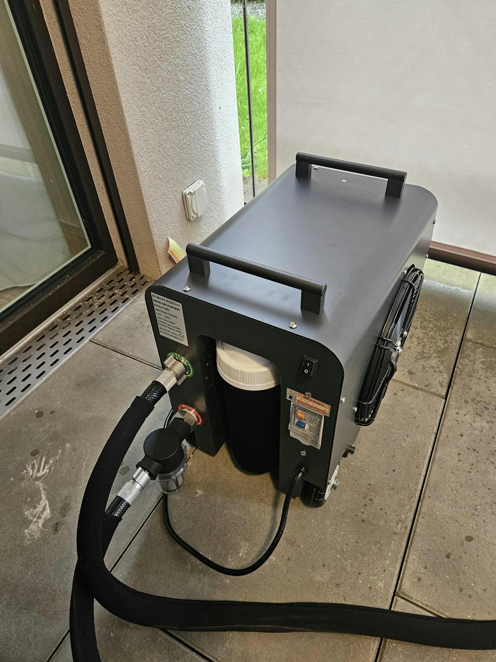 Zudem empfehlen wir, das Kühlsystem vor starker Witterung zu schützen, um die Lebensdauer zu verlängern. Achte darauf, dass der Stecker nicht nass wird und die Steckdose geerdet ist.